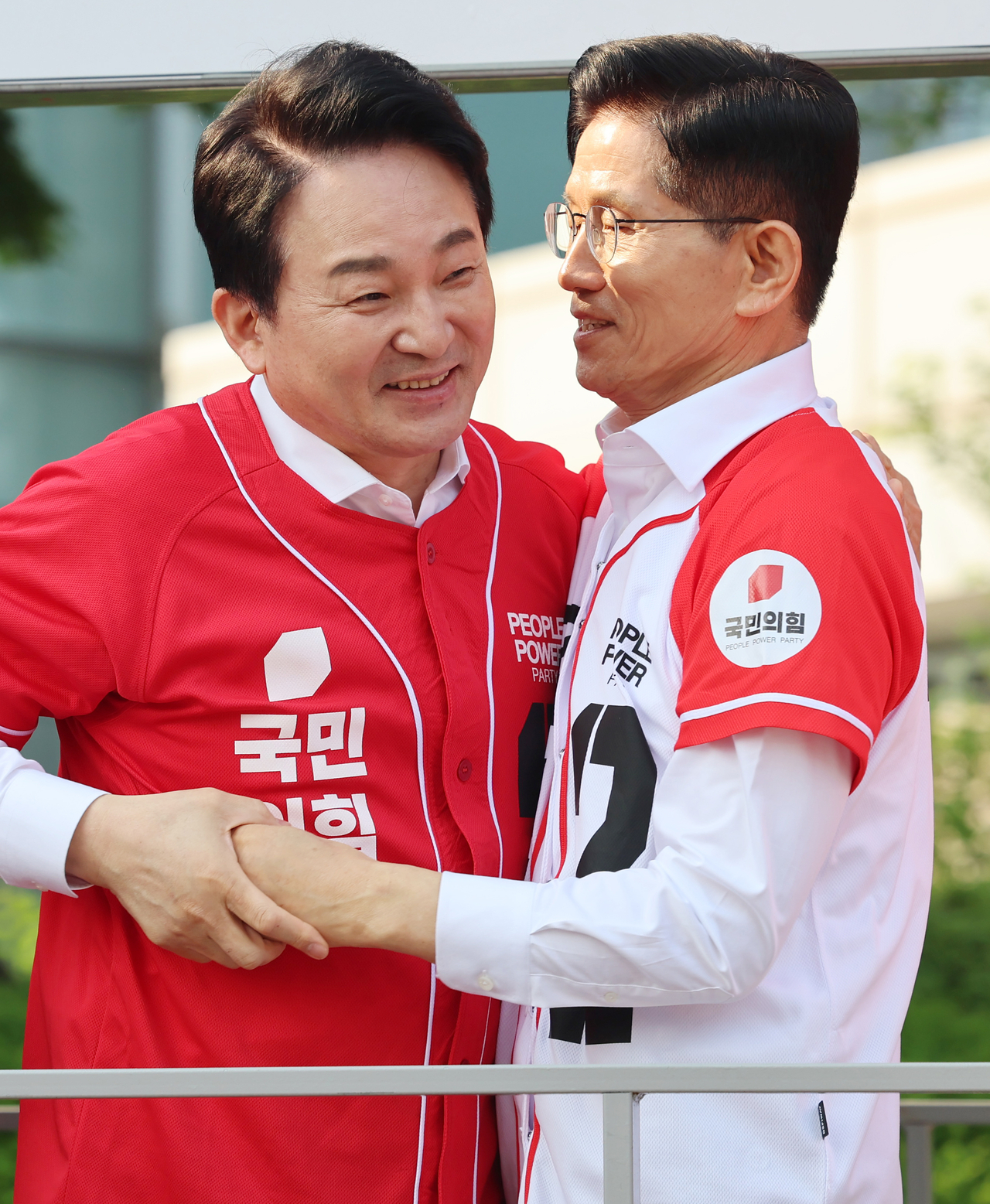 지난 총선 이재명 더불어민주당 후보와 인천 계양을에서 맞붙었던 원 전 장관은 이날 오전 인천 연수구의 한 사거리에서 진행된 김문수 국민의힘 대선 후보의 출근길 인사 현장을 찾아 이같이 말했다.