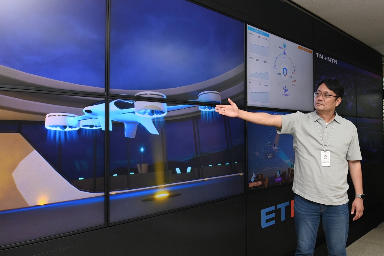| ETRI 연구진이 지상, 위성 통합 6G 초공간 통신 기술을 시연하고 있다.[ETRI 제공] |