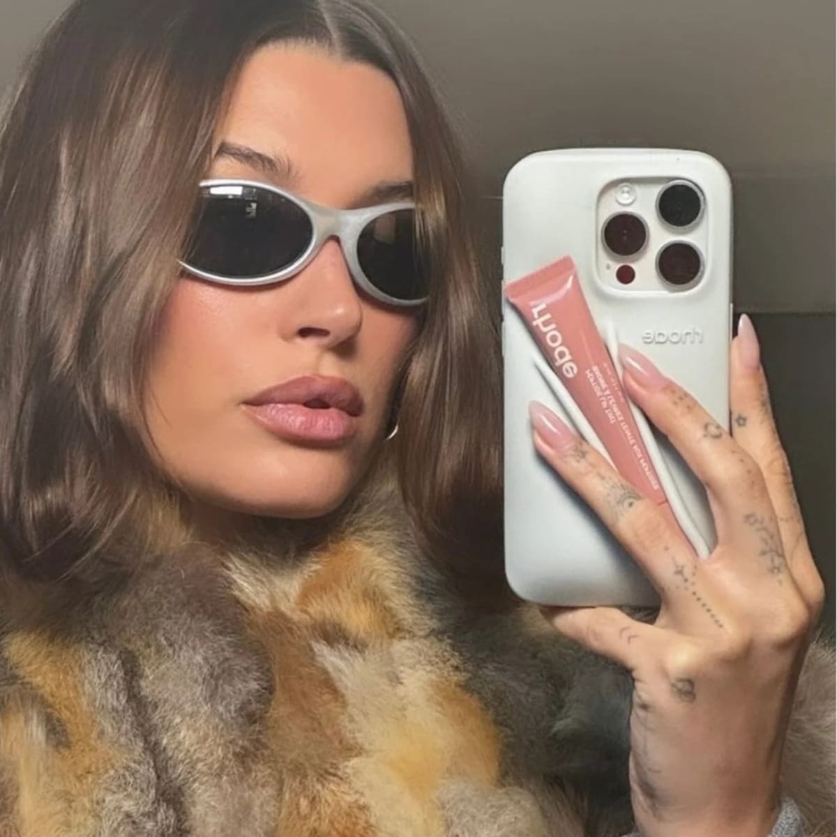 | 로드에서 출시한 실리콘 폰케이스와 립 틴트를 들고 있는 헤일리 비버 [헤일리 비버 인스타그램] |