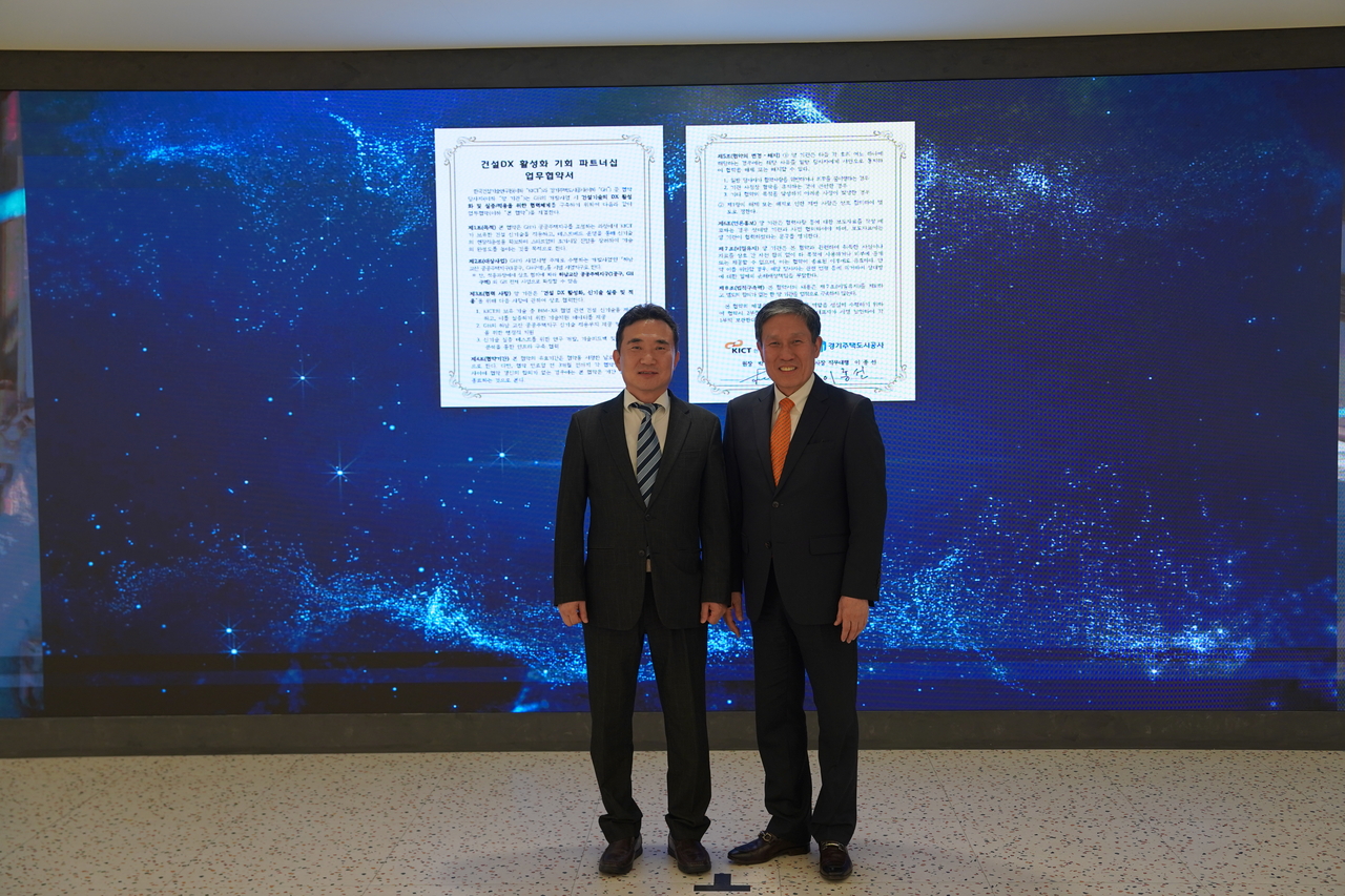 [헤럴드경제(수원)=박정규 기자]경기주택도시공사(GH)는 수원 본사에서 한국건설기술연구원(KICT)과‘건설 디지털 전환(DX) 활성화 기회 파트너십’업무협약을 체결했다고 28일 밝혔다.