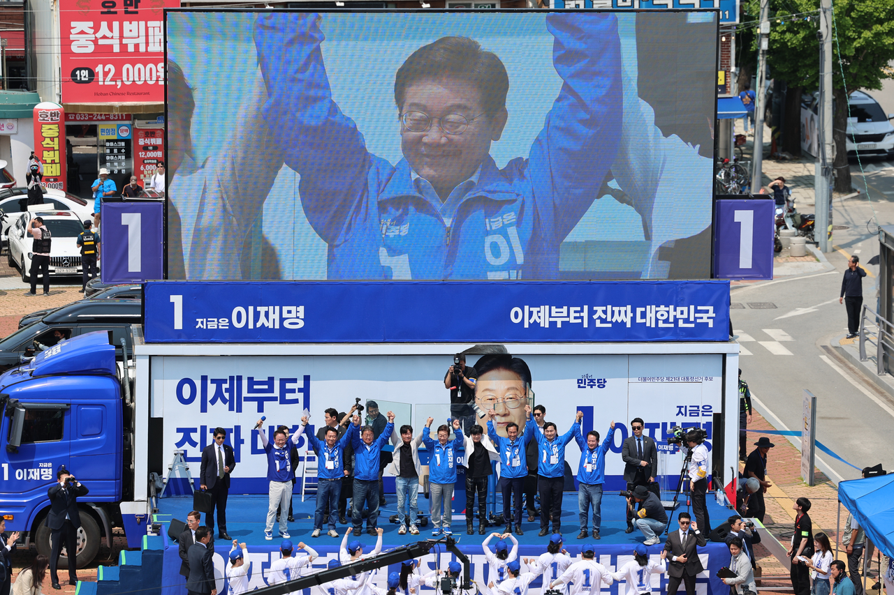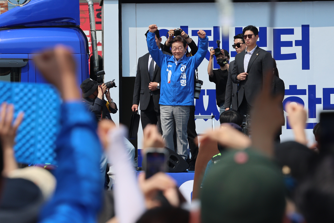 이 후보는 “안보는 평화를 통해, 한미 동맹 강화를 통해, 강력한 국방력을 통해 북한 대북 억지력을 유지하되 끊임없는 대화 소통 노력을 통해 협력하고 공존하고 평화적으로 공동 번영하는 상태를 만들고자 노력해 온 절대로 안보를 정략에 이용하지 않는 민주당, 그리고 민주당 정권, 그리고 이재명 아니냐”면서 “확실히 안보는 민주당”이라고 목소리를 높였다.