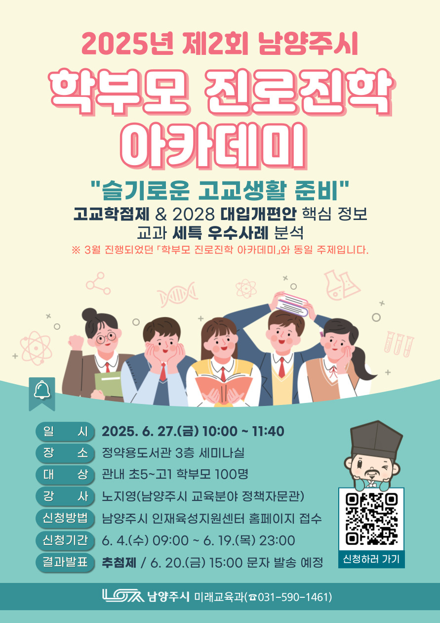 시는 이번 아카데미가 학부모의 진학 이해도를 높이고, 자녀와 함께 진로 방향을 설계하는 기회가 될 것으로 기대한다.