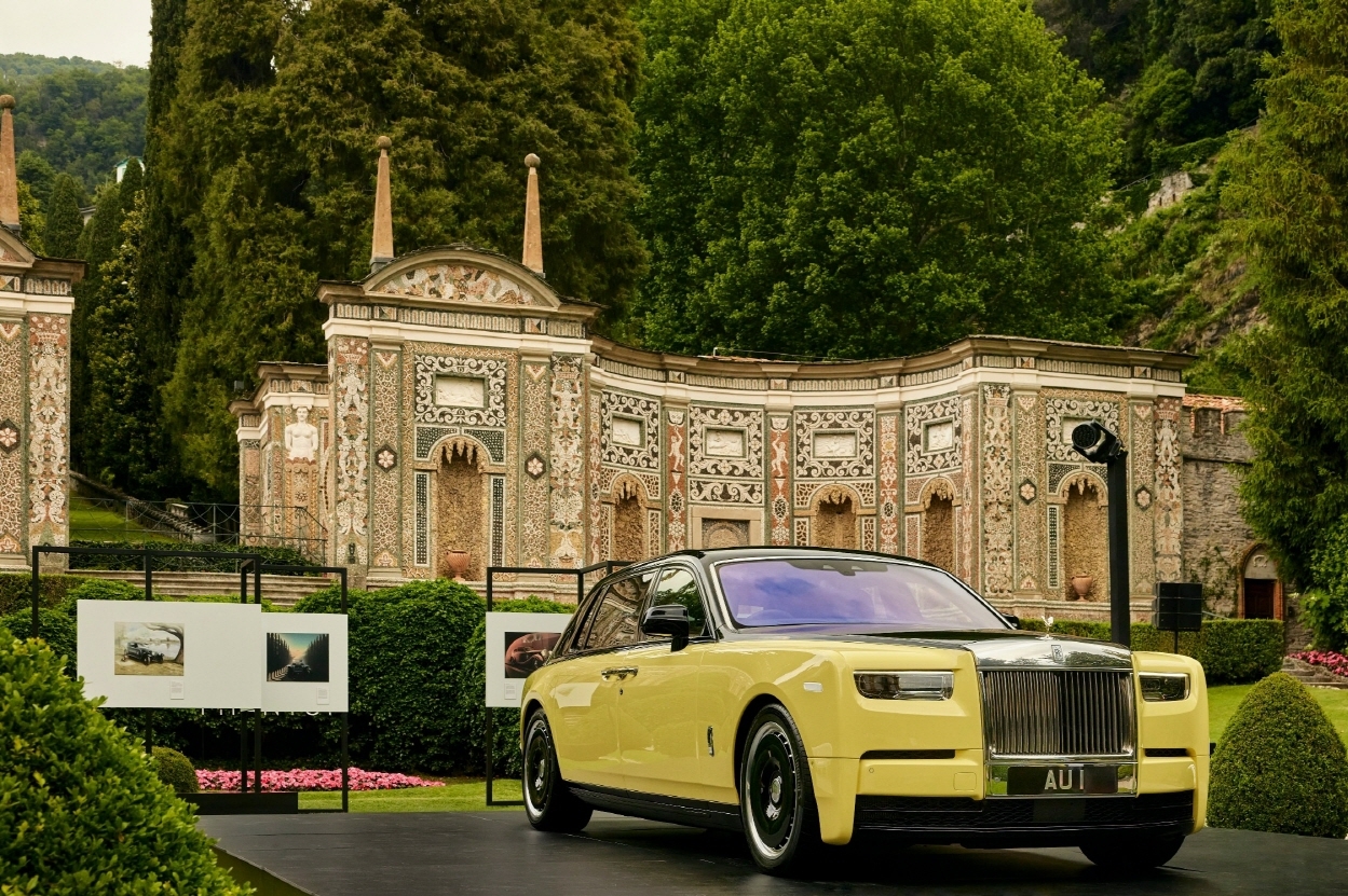 행사 현장인 코모 호수 인근 그랜드 호텔의 상징적인 공간 ‘모자이크 잔디밭’에 전시된 팬텀 골드핑거는 영화의 상징인 금을 활용한 18캐럿 및 24캐럿 금장 디테일과 함께, 등장인물과 장소, 테마를 반영한 섬세한 요소들이 더해졌다.