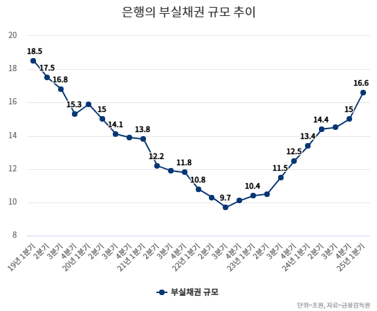 30일 금융감독원에 따르면 지난 3월 말 국내 은행의 부실채권은 16조6000억원으로 지난해 12월 말보다 1조6000억원 증가한 것으로 잠정 집계됐다. 이는 2019년 9월 말(16조8000억원) 이후 가장 큰 규모다.