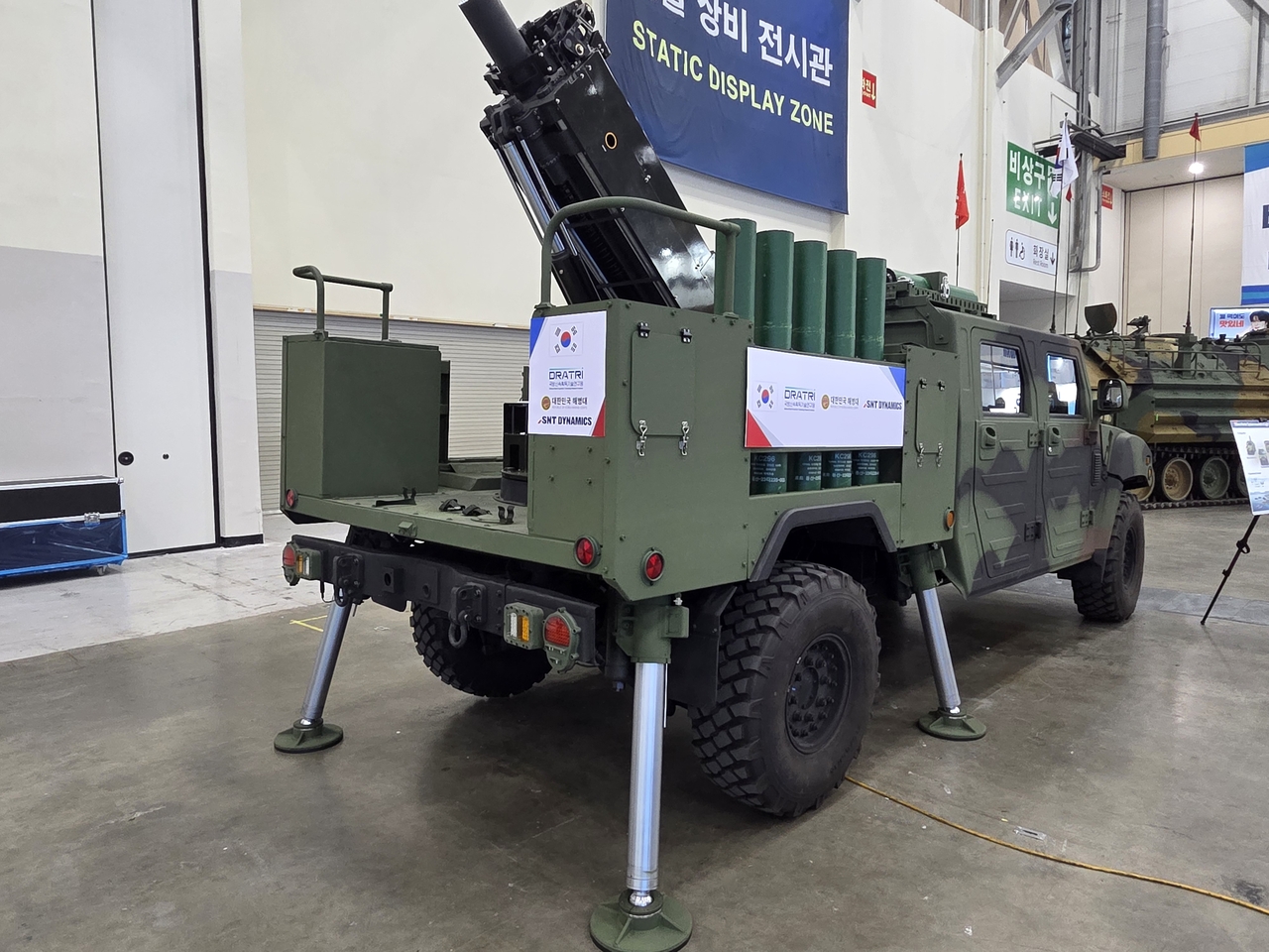 | SNT다이내믹스가 28~31일 부산 벡스코(BEXCO)에서 열리는 ‘국제해양방위산업전(MADEX) 2025’에 ‘K-방산 원팀 플랫폼 전략’을 들고 나왔다. SNT다이내믹스는 해병대 부스에 상륙작전용 소형전술차량(LTV) 탑재형 120㎜ 자주박격포체계, LIG넥스원 부스에는 무인수상정(USV) 주무장 3포열 20㎜ 원격사격통제체계(RCWS)를 선보였다. [SNT모티브 제공] |