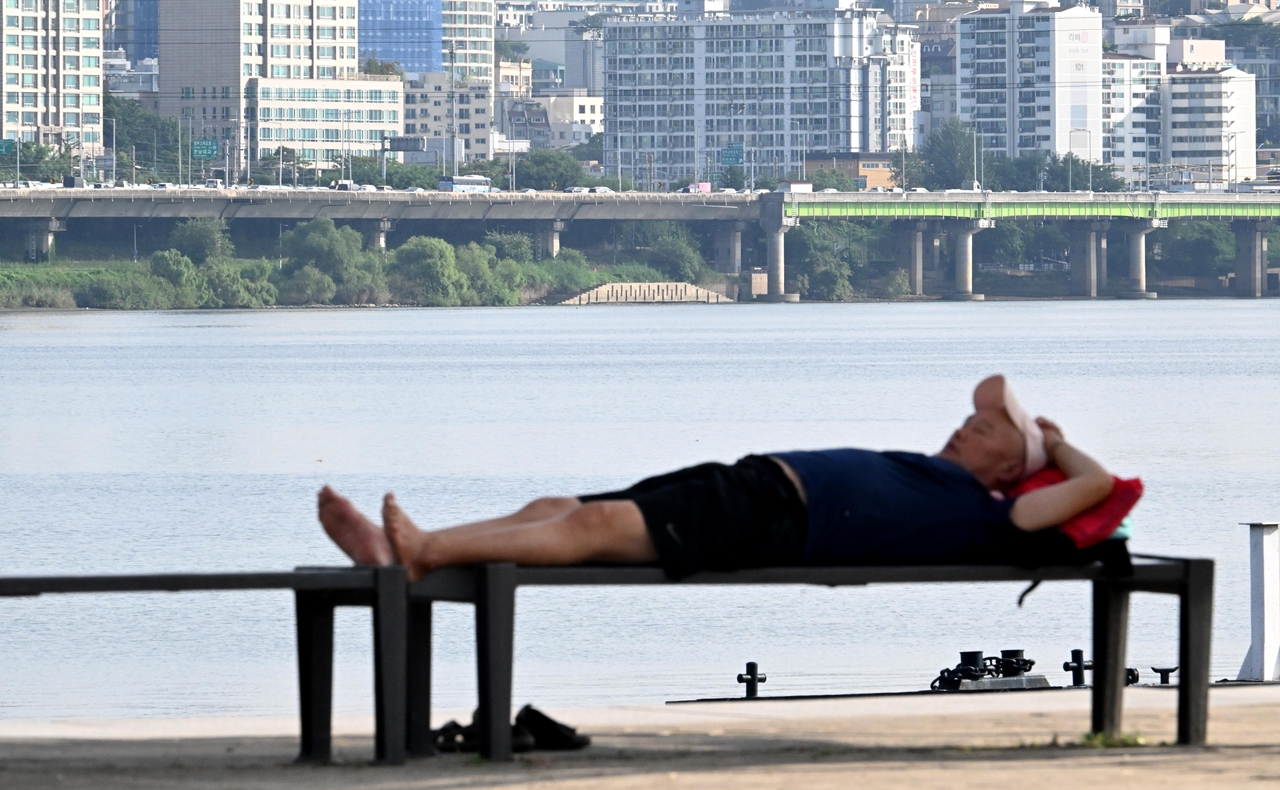 | 서울 서초구 반포한강공원 그늘에서 한 시민이 더위를 피해 휴식을 취하고 있는 모습. 2024.8.16 임세준 기자 |
