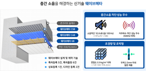 특히 천장형 제품은 올 하반기부터 주요 건설사 500세대 이상 시공을 눈앞에 두고 있어 웨이브메타 기반 소음해결의 대표적인 기술기업으로 인정받고 있다. 최근 중국시장에서 글로벌혁신센터(KIC)의 지원을 받았으며, 올 5월 중순에는 대한민국 프리미어 1000+기업에 선정되어 특허청을 비롯해 다양한 정부 지원을 받아 글로벌 성과 창출이 더욱 기대되고 있다.