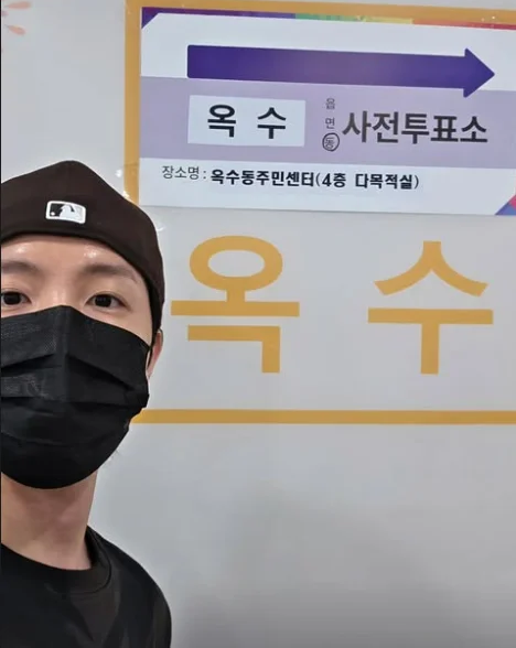 | 사전투표소 앞에서 셀카를 찍어 SNS에 올린 제이홉. [제이홉 SNS 갈무리] |