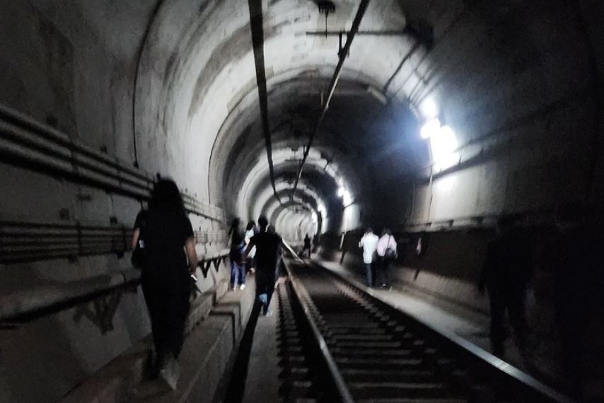 이에 승객들은 깜깜한 지하 터널로 대피하며 불안해 했다.