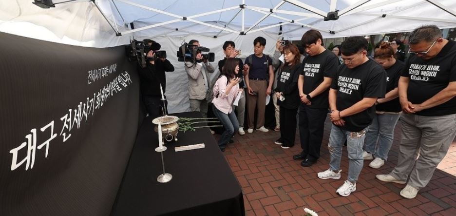 | 대구 전세 사기 희생자 1주기 추모 모습. [연합] |