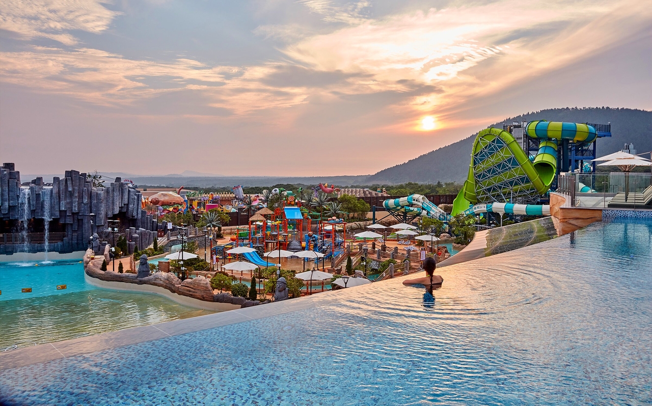 | 노을진 제주신화월드 스카이풀의 정취 |
