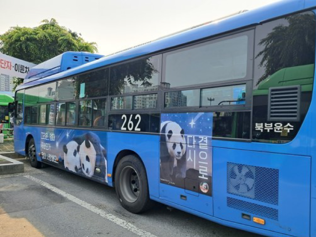[헤럴드경제=함영훈 기자] 4일 부터 서울 시내에서는 우리 곁을 떠난 한국산 첫 판다 ‘푸바오’ 광고 래핑 버스 2대가 운행을 시작해 눈길을 끌었다.