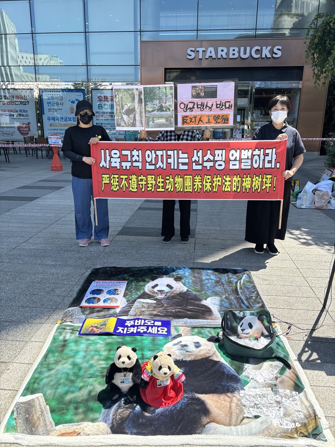 팬들은 “이번 시위는 위임신 판다로 기지에서 발표된 후 기본적인 사육 원칙조차 지켜지지 않는 환경에서 방치되고 있다는 점을 알리고, 선수핑 기지 내 학대 및 방임 정황을 전 세계에 고발하기 위해 기획됐다”고 밝혔다.