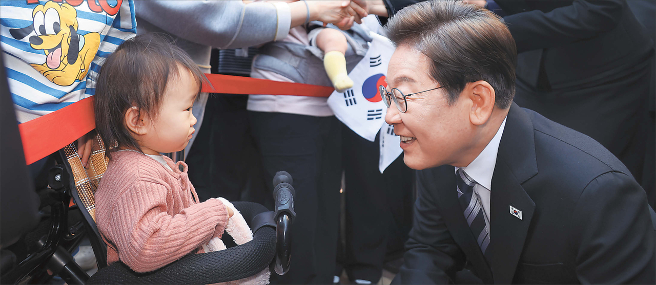 | 이재명 대통령이 4일 인천 계양구 사저를 출발하며 어린아이와 인사하고 있다. [연합] |