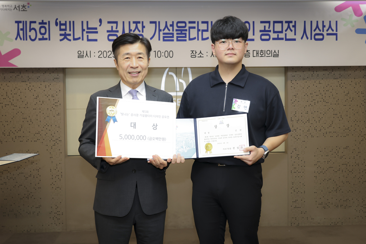 전국 최초 ‘야간 조명’ 활용한 공사장 가설울타리 디자인 공모전 개최… 4일 구청에서 시상식 개최, 122개 작품 중 대상 포함 총 22개 작품 선정… 대상에는 ‘SHINING SEOCHO’, 최우수상에는 ‘서리풀의 빛, 도시를 물들이다’ ‘Eco-Seocho’ 등 2점 선정 등