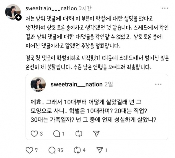 | 이단비 인천시의회 의원이 올린 사과문. [스레드] |