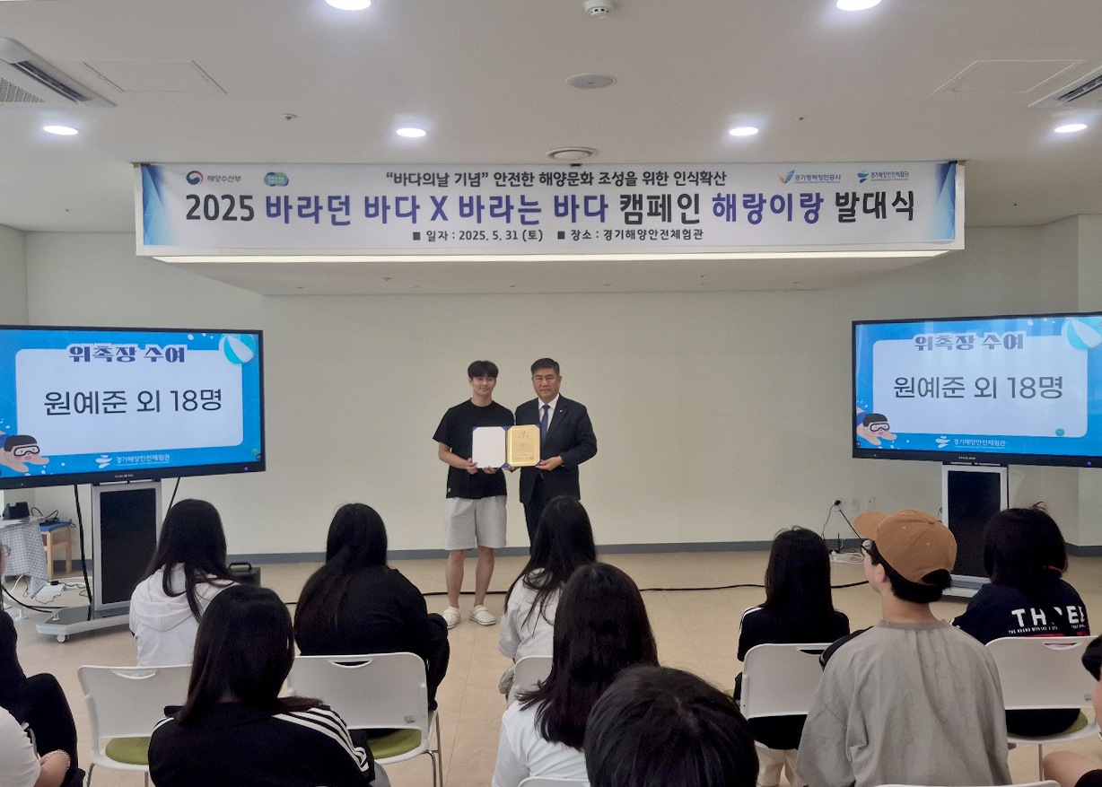 지난달 31일 활동지원단 ‘해양이랑’을 위촉했다. ‘해양이랑’은 ‘넓고 큰 바다’라는 뜻의 ‘해양’과 ‘물결처럼 오목하고 볼록한 모양’을 의미하는 순우리말 ‘이랑’을 결합한 이름으로, 해양환경 보호 활동이 파도처럼 잔잔하게 번져나가기를 바라는 의미를 담고 있다. 이들은 해양안전 지도자로서 해양환경 보전과 탄소중립 실천을 주제로 한 다채로운 활동을 수행할 예정이다.