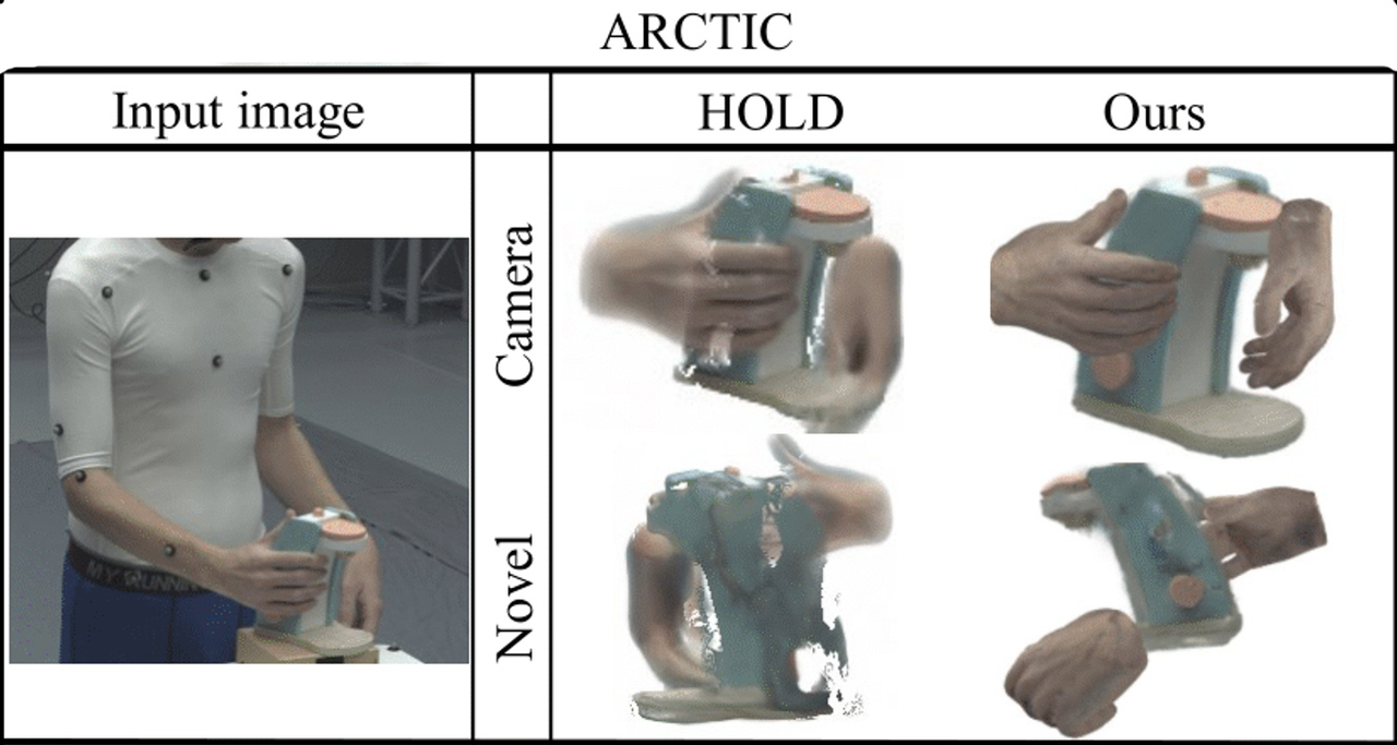 실제 ARCTIC, HO3Dv3 등 국제 데이터셋을 활용해 실험한 결과, BIGS는 손의 자세, 물체의 형상, 두 손과 물체 간의 접촉 정보 복원은 물론 화면을 재현하는 렌더링 품질면에서도 기존 기술보다 우수한 성능을 보였다.