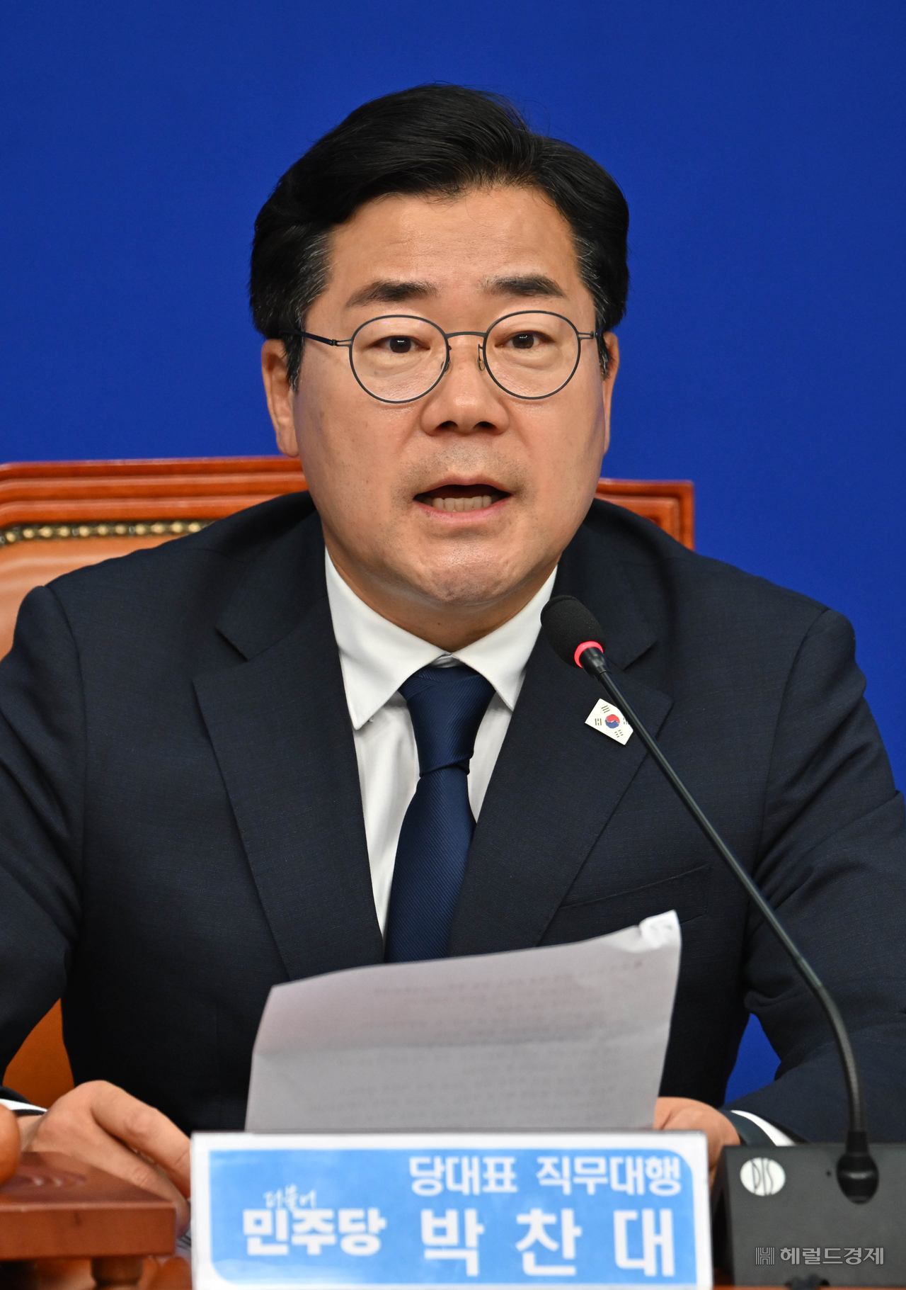 [헤럴드pic] 발언하는 박찬대 당대표 권한대행 글꼴 선택 본문 텍스트 크게본문 텍스트 작게 인쇄 [헤럴드경제=임세준 기자] 박찬대 더불어민주당 당대표 권한대행 겸 원내대표가 9일 오전 서울 여의도 국회에서 열린 최고위원회의에 참석해 발언하고 있다.