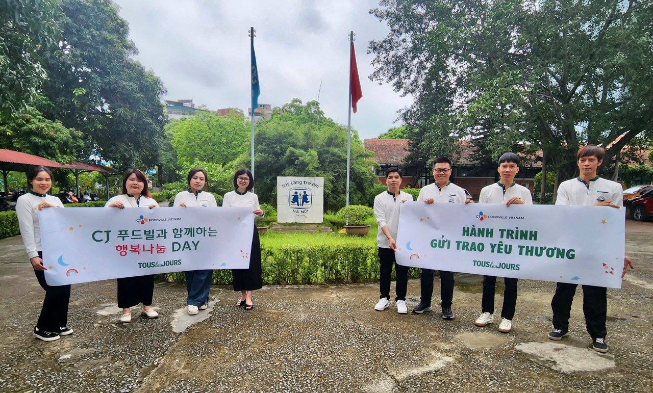 CJ푸드빌 베트남 현지 임직원들은 지난 1일 호치민에 위치한 떰득 보육원과 하노이의 SOS 어린이 마을을 방문해 봉사활동을 펼쳤다. 150명 이상의 아동들에게 뚜레쥬르 간식 세트 등 기부 물품도 전달했다.