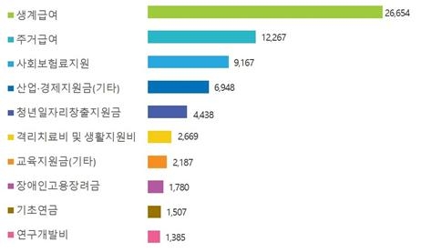 이어 주거급여 122억 원, 사회보험료지원금 92억 원 순이었다.