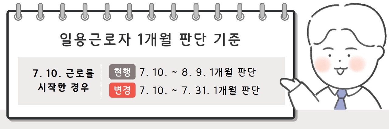 | 건설 일용근로자의 사업장 가입 기준 변경 예시[국민연금공단 자료] |