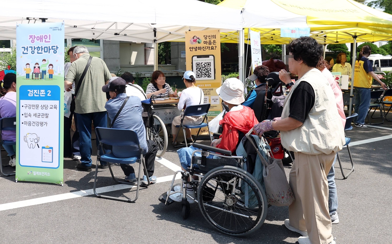 행사의 중심이 되는 1구역 ▲건강상담존에서는 ‘장애인 건강한마당’ 프로그램이 운영된다. 만성질환 관리, 구강 관리, 금연·절주, 마음 건강·치매 예방, 장애인 재활 보조기기 체험, 응급 전화 설정 안내 등 생활 밀착형 건강 프로그램들이다.