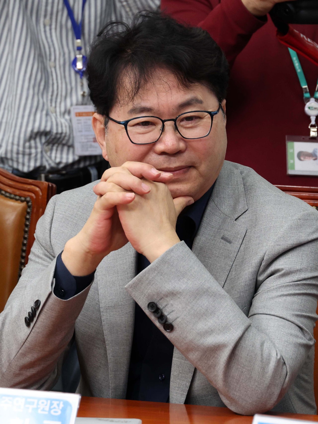 | 이한주 국정기획위원장이 지난 5일 서울 여의도 국회에서 열린 최고위원회의에서 박찬대 대표 직무대행 겸 원내대표의 발언을 듣고 있다. 이상섭 기자 |