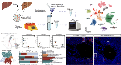 KAIST는 의과학대학원 박종은 교수, 한국생명공학연구원(KRIBB) 노화융합연구단 김천아 박사, 서울성모병원 탁권용 박사 공동 연구팀이 노화 간 조직 내에서 국소적으로 발생하는 섬유화된 미세환경을 포착하고 이를 단일세포 전사체 수준으로 정밀 분석할 수 있는 ‘파이니-시퀀싱’기술을 개발했다고 12일 밝혔다.