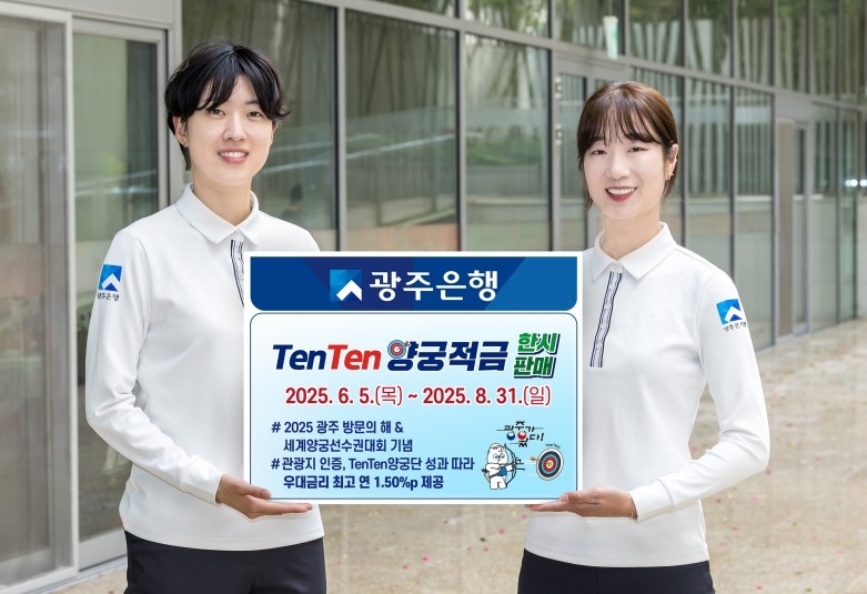 [헤럴드경제(광주)=서인주 기자] 광주은행은 2025 광주 방문의 해와 광주 2025 세계양궁선수권대회 성공 개최를 기원하는 ‘텐텐(TenTen) 양궁 적금’을 출시했다고 11일 밝혔다.