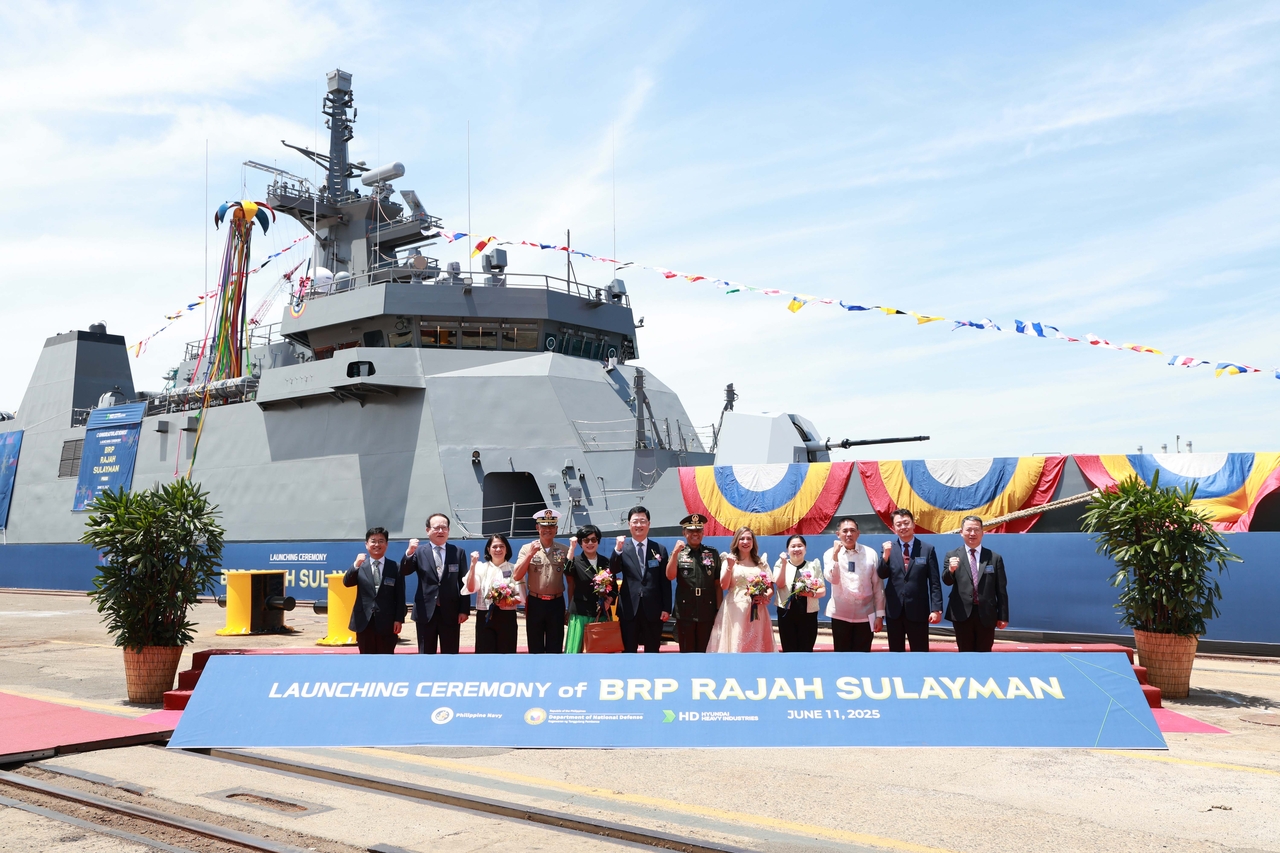 HD현대중공업은 11일 울산 본사에서 2400톤급 필리핀 원해경비함 1번함 ‘라자 술라이만함’ 진수식을 거행했다고 12일 밝혔다.