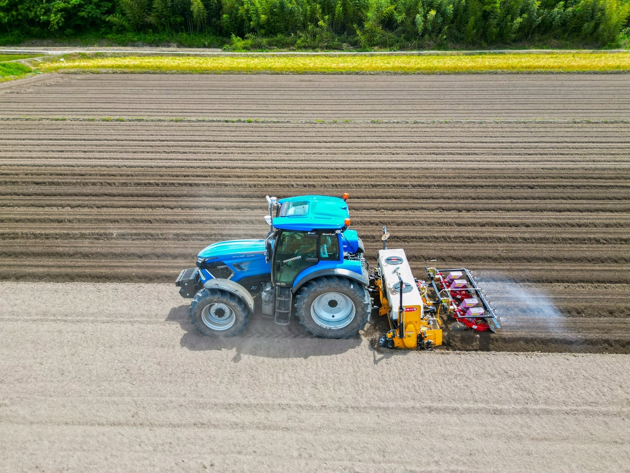 | MT9 자율작업 트랙터가 자율작업으로 콩 파종을 하고 있는 모습. [LS엠트론 제공] |