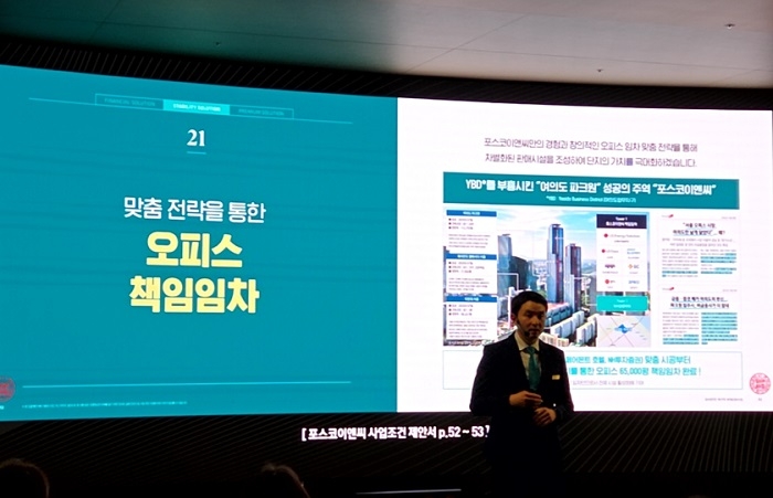 포스코이앤씨 관계자는 홍보관에서 설명을 통해 “책임임차는 단순한 대물변제와는 다르다. 상권 활성화와 업무시설 유치, 자산 가치 극대화까지 제안하는 조건”라며 “단순 시공을 넘어, 준공 이후까지 용산정비창의 업무시설 활성화를 시키는 목표가 바로 경쟁사와 대비되는 포스코이앤씨의 차별점”이라고 말했다.