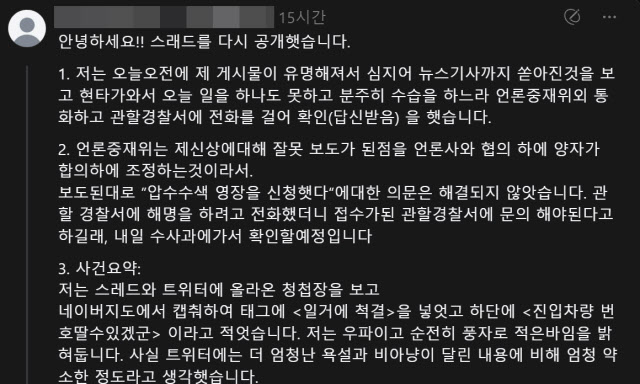 현재는 해당 글은 비공개로 전환된 상태다.