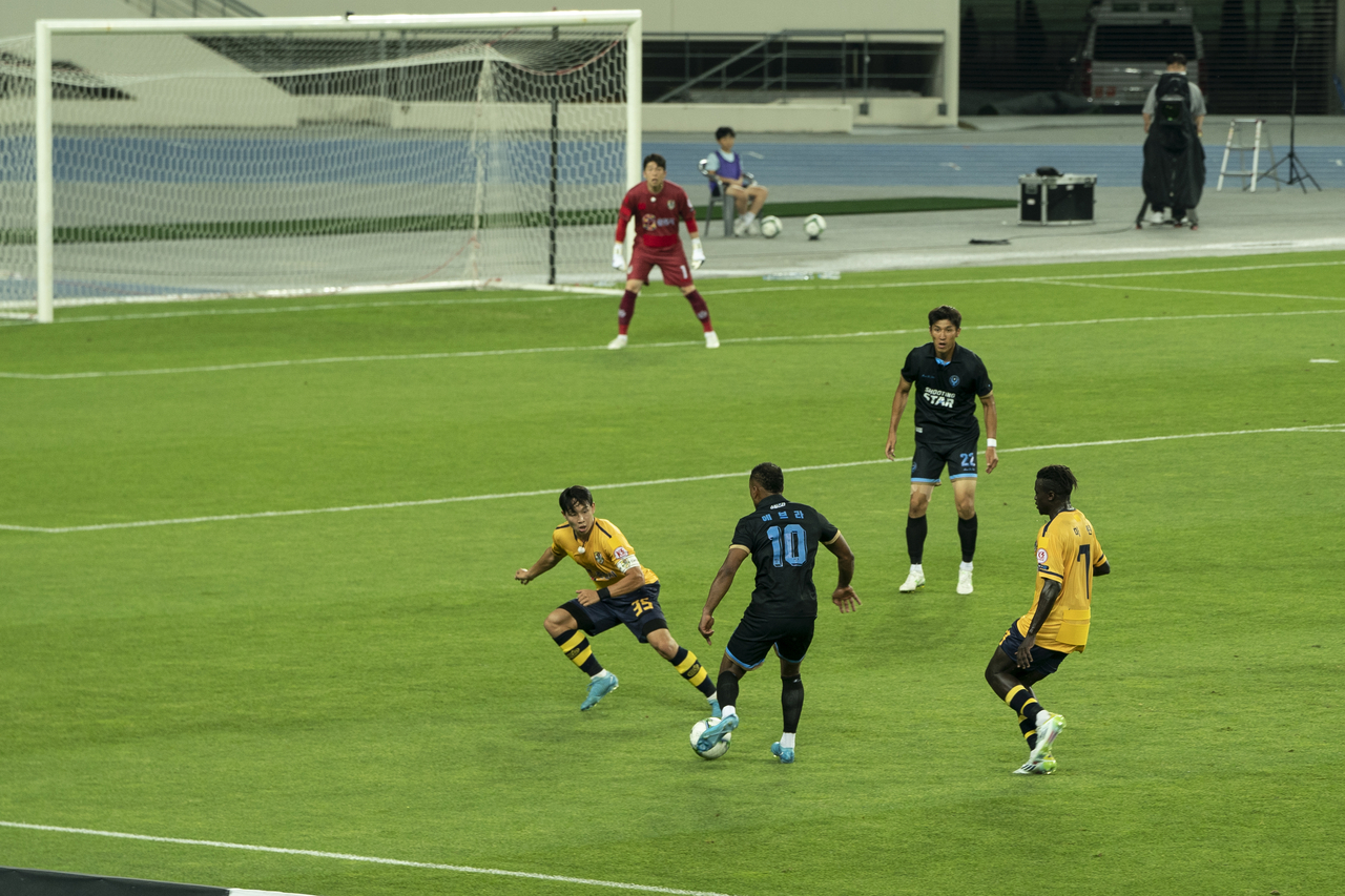 | 12일 용인미르스타디움에서 ‘슈팅스타’와 ‘춘천시민구단’과의 경기가 펼쳐지고 있다. [쿠팡플레이 제공] |