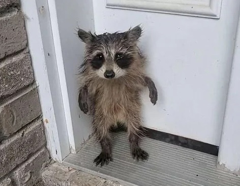 [헤럴드경제=김보영 기자] 미국의 한 주택 현관 앞에서 비에 흠뻑 젖은 아기 라쿤이 서 있는 모습이 발견돼 화제가 되고 있다.