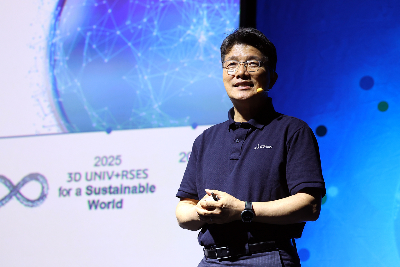 | 정운성 다쏘시스템코리아 대표이사가 지난달 29일 서울 코엑스에서 ‘3D익스피리언스 코리아 컨퍼런스 2025’에서 환영사를 하는 모습. [다쏘시스템 제공] |