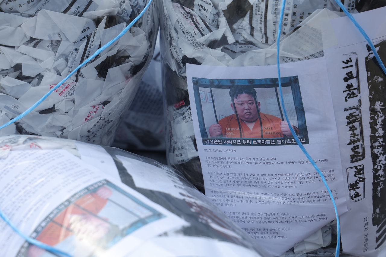 | 정부는 16일 오전 불법적인 대북전단 살포를 막기 위한 유관부처 회의를 개최했다. 민간단체가 준비한 대북전단. [연합] |