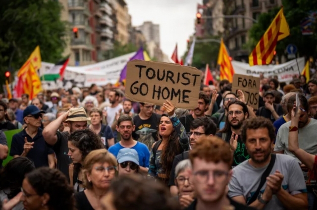 15일(현지시간) 뉴욕타임스(NYT)에 따르면, 스페인 바르셀로나에서는 15일 600명의 시위대가 ‘관광객은 집으로 돌아가라’ 등의 문구가 적힌 피켓을 들고 ‘당신들의 휴가는 나의 고통’ 등 구호를 외치며 시내 중심가를 행진했다.