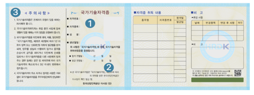 | 수첩형 국가기술자격증 [한국산업인력공단 제공] |
