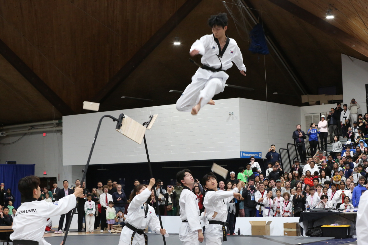 | 가천대학교 태권도전공 학생들이 미국뉴저지 페어리 디킨슨대학교(Fairleigh Dickinson University)에서 열린 ‘K Taekwondo League International Championship’에 참가해 태권도 공연을 펼치고 있다.[가천대 제공] |