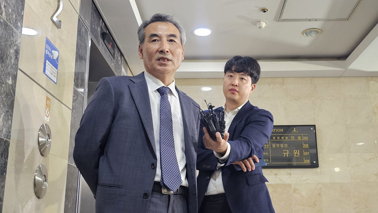 | 김건희 여사 특검법을 맡은 민중기 특별검사가 17일 법무법인 이작 앞에서 기자들의 질문에 답하고 있다. [박지영 기자] |
