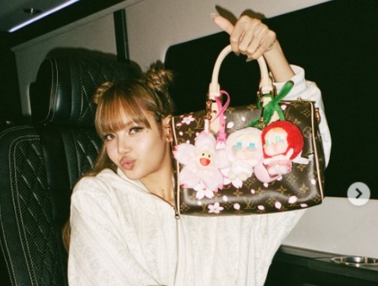 | 블랭핑크 리사가 ‘라부부’ 인형이 달린 핸드백을 들어 보이고 있다. [블랙핑크 리사 인스타그램] |