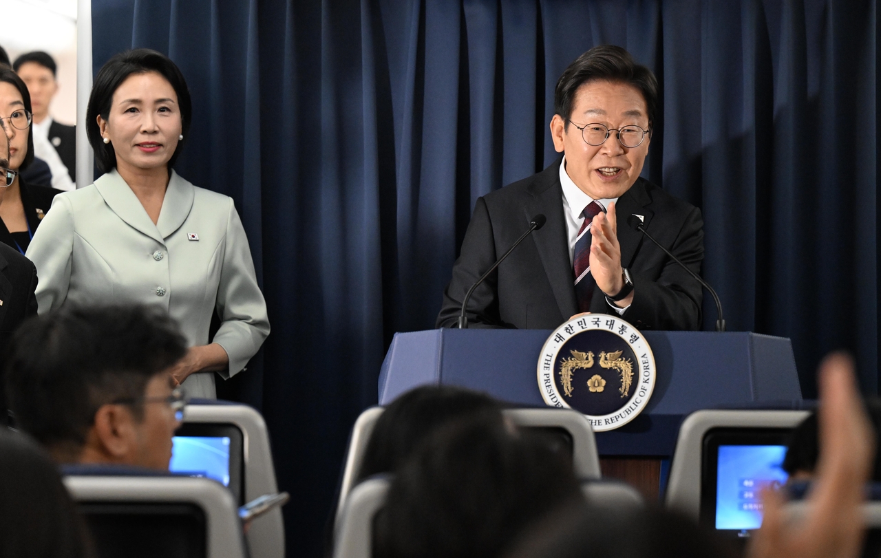 기내 기자회견에서는 김민석 국무총리 후보자의 자질 논란 등 최근 인사 관련 질문도 이어졌다. 이 대통령은 “총리 후보 문제의 경우 본인에게도 물어봤는데 충분히 다 설명할 수 있는 그냥 의혹에 불과하다 말씀했다”면서 “청문회에서 충분히 설명할 수 있으리라 생각한다”고 했다.