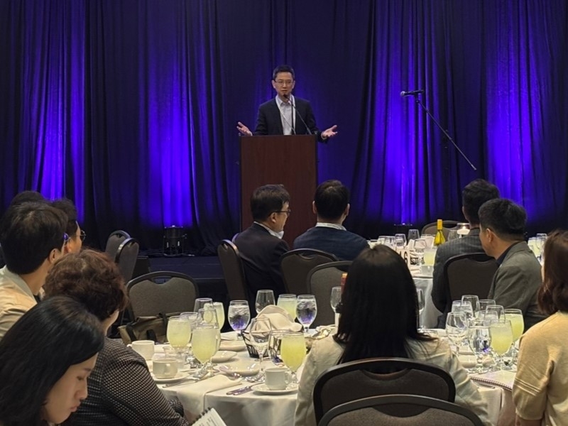 | ‘2025 재미한인제약인협회(KASBP) 춘계 심포지엄’에서 발표 중인 허은철 GC녹십자 대표 [GC녹십자 제공] |