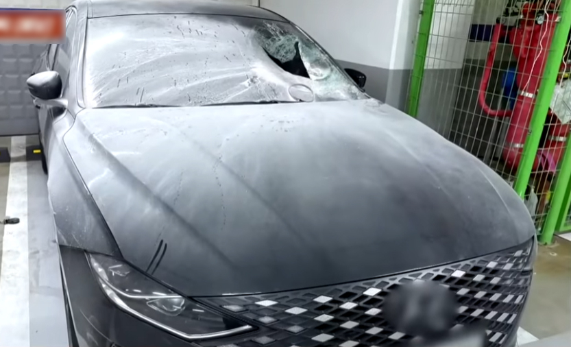 제보자 A씨는 오피스텔 관리사무소로부터 자신의 차량이 파손됐다는 연락을 받고 주차장에 내려갔다가 믿을 수 없는 모습을 맞닥뜨렸다. 구매한 지 2년 밖에 되지 않은 자신의 차량 앞 유리가 깨지고 내부에는 분진이 가득한 상태였기 때문이다.