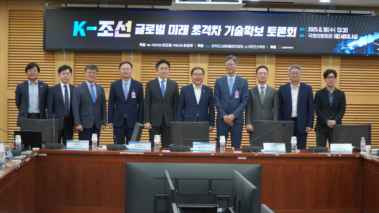 김형택 HD한국조선해양 상무는 18일 서울 여의도 국회의원회관 제2세미나실에서 열린 ‘K-조선 글로벌 미래 초격차 기술 확보 토론회’에서 “조선 산업을 뒷받침하는 R&D 역량에서 우리나라가 중국에 앞섰다고 단정지을 수 없다”고 경고했다. 이날 토론회는 허성무·안도걸 더불어민주당 의원이 주최했다.