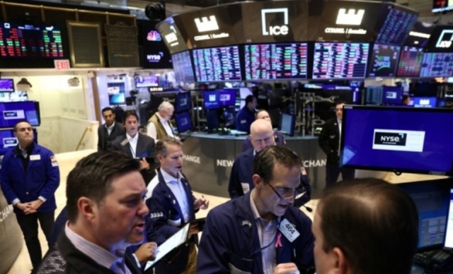 | 뉴욕증권거래소에서 트레이더들이 시황을 지켜보며 심각한 표정을 짓고 있다.[AP=연합] |