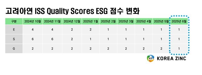 전 세계 주요 기관투자자와 연기금 등이 ISS 퀄리티스코어를 참고한다는 점에서 고려아연의 대외 위상과 신인도 향상, 투자자 신뢰 제고에 큰 도움이 될 것으로 전망된다.