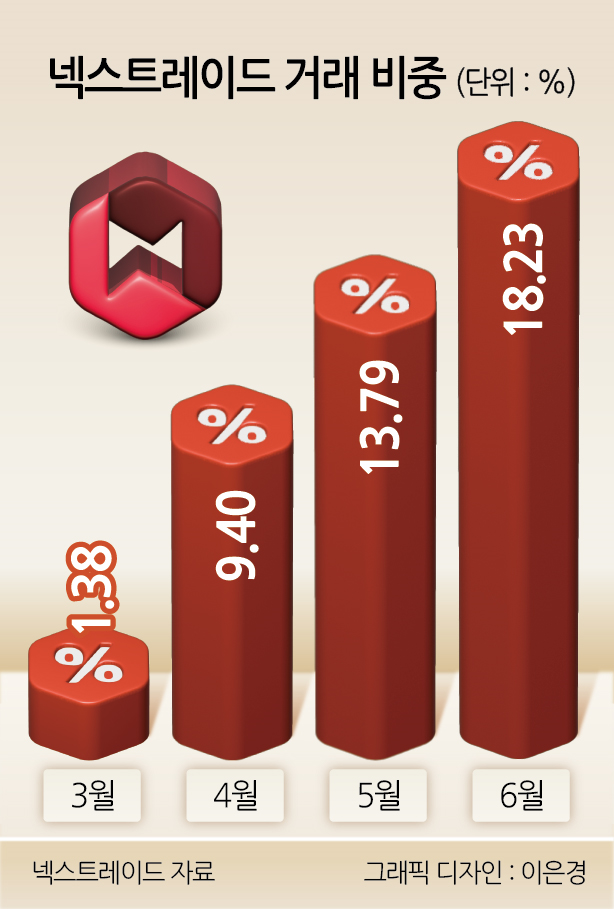 [헤럴드경제=신주희 기자] 대체거래소 넥스트레이드의 거래량이 빠르게 증가하면서 ‘15% 룰’ 위반 우려가 커지고 있다. 자본시장법상 정해진 거래량 상한선을 넘길 경우 거래가 정지되는 규정이 적용되기 때문이다.